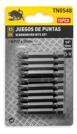 Puntas Phillips Ph2 Punta Magnetica Hexagonal 1/4 50mm 10pcs