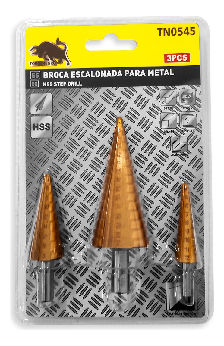 3 Broca Conica Escalonada Pino Perfora 4 A 32mm Paso A Paso cantidad
