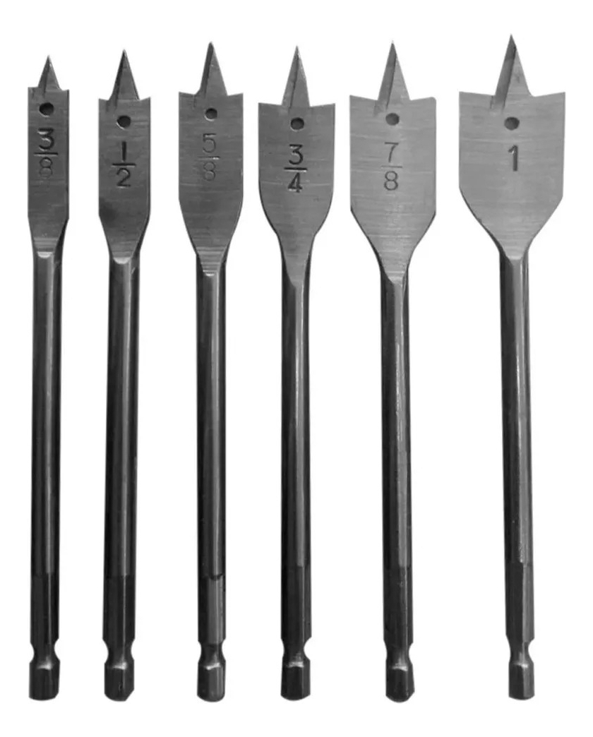 Broca Mecha Plana Madera 6pc 3/8 - 1/2 - 5/8 - 3/4 - 7/8 - 1 cantidad