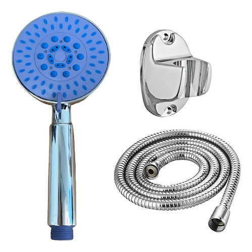 Pack Mango Ducha Challa Azul+manguera Flexible 1.5 M+soporte Azul Cromado. Compra online con envío a todo el país. Stock disponible.