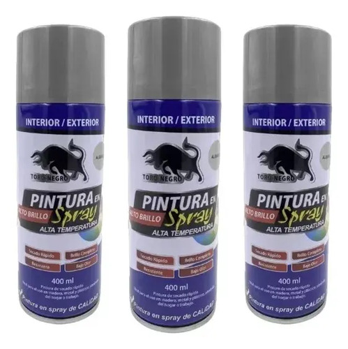 3 Pintura Spray Alta Temperatura 400ml Color Gris Aluminio. Compra online con envío a todo el país. Stock disponible.