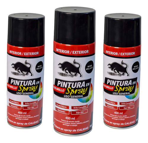 Pintura En Aerosol Negro Brillante Secado Rápido Toro Negro 400ml 3 Unid. Compra online con envío a todo el país. Stock disponible.